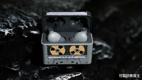 你见过手绘磁带的耳机仓设计吗?耳机仓是四四方方的“小橡皮”,正面是手绘漫画风格的类似缩小版磁带那种,顶端手绘的是类似播放器那种控制面板,妥妥的就是小时候那种迷你磁带机样式
